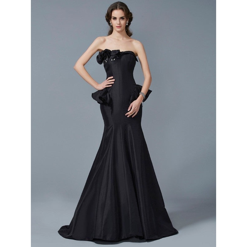 Trumpet/Mermaid Strapless Sleeveless Ruffles Long Taffeta Dresses