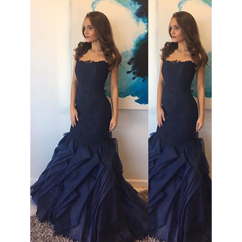 Trumpet/Mermaid Strapless Taffeta Lace Sleeveless Floor-Length Dresses