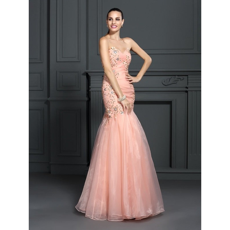 Trumpet/Mermaid Sweetheart Applique Sleeveless Long Organza Dresses