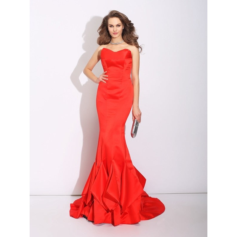 Trumpet/Mermaid Sweetheart Layers Sleeveless Long Satin Dresses