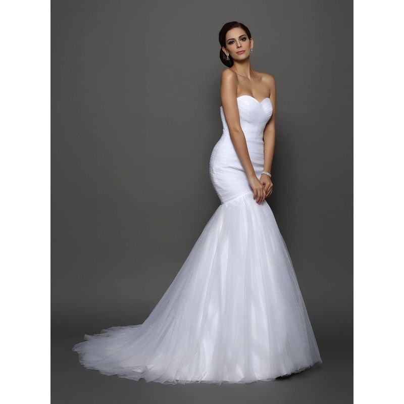 Trumpet/Mermaid Sweetheart Pleats Sleeveless Long Net Wedding Dresses