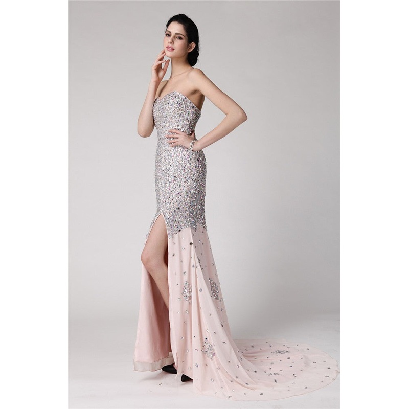 Trumpet/Mermaid Sweetheart Sleeveless Beading Rhinestone Long Chiffon Dresses