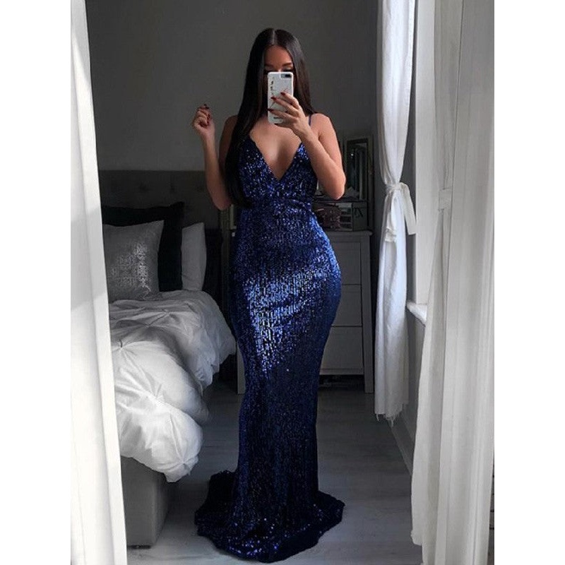 Be the first to review “Trumpet/Mermaid V-neck Sweep/Brush Train Ruffles Sleeveless Sequins Dresses”
