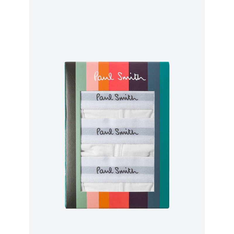 Men's white low-rise boxer briefs.Three white pairs of boxer briefsWhite and grey Paul Smith signature waistbandMaterialsFabric Content: 94% cotton, 6% spandexSize GuideFits true to size. We recommend taking your normal size.For additional size information