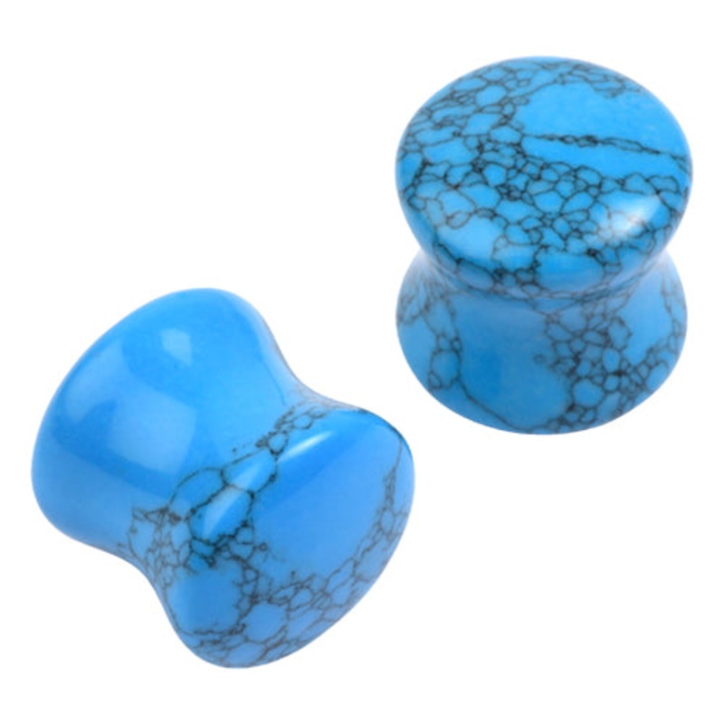 These double flare convex turquoise plugs have a wearable area of 3/8" between flares. Choose your size below.