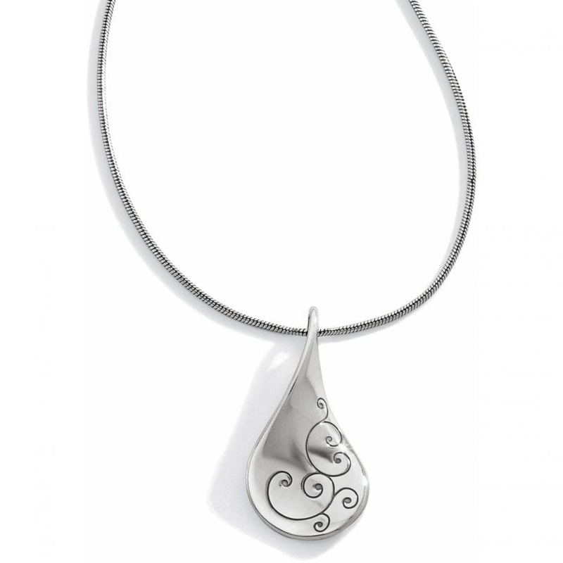 Give your look a contemporary twist with a cool twirled pendant on a smooth snake chain. It lets you go from jeans to glam without missing a beat.