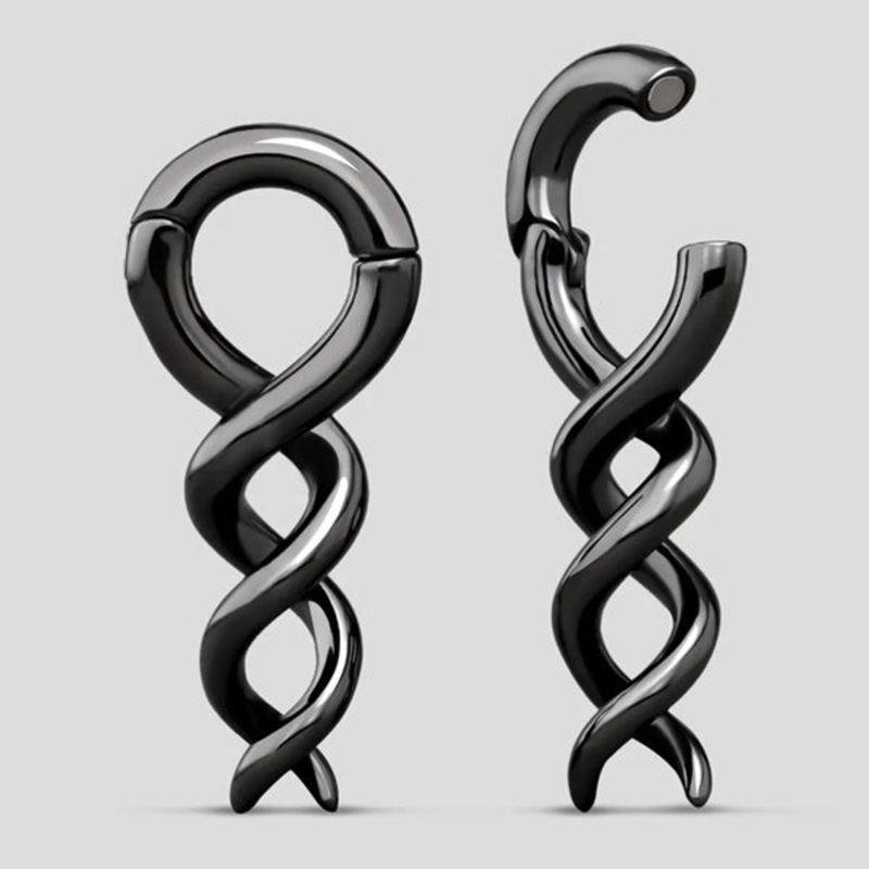 These2 gauge twist hangers are cast from black PVD coated 316L stainless steel. The hinged segments are secured by strong magnets.