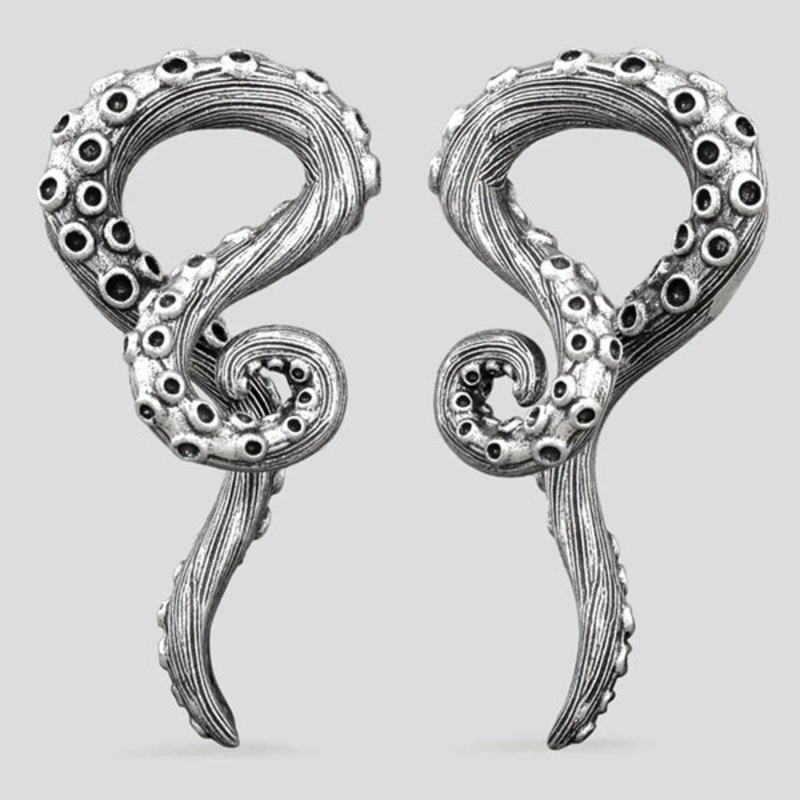These 0 gaugetwisted tentacle hangers are cast from 316L stainless steel.