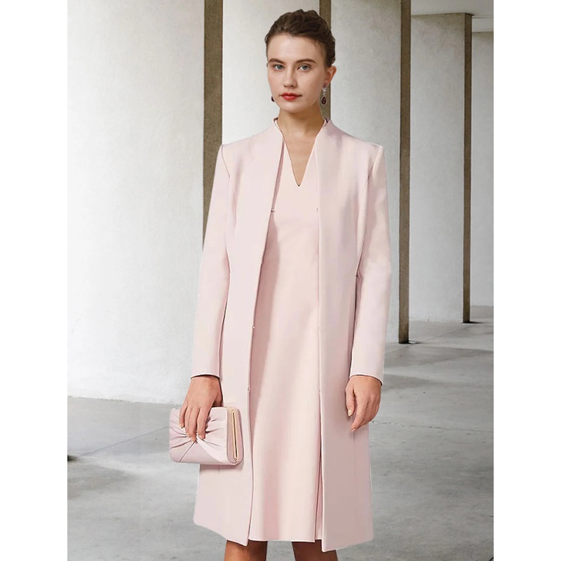 Two Piece A-Line Mother of the Bride Dress Wedding Guest Church Elegant V Neck Knee Length Chiffon Short Sleeve Jacket Dresses with Solid Color Fall