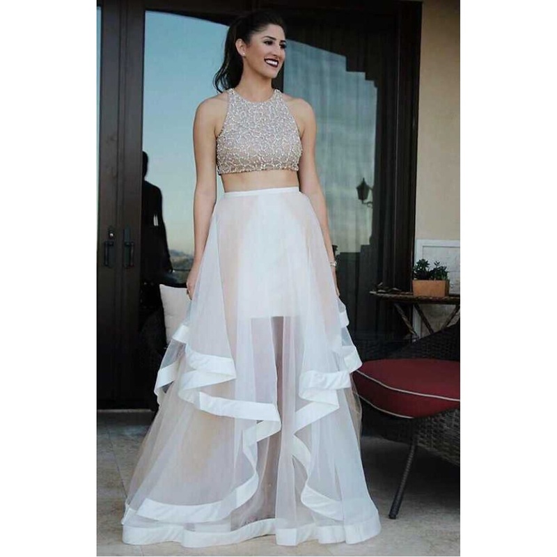Two Piece Ball Gown Prom Dresses Sparkle & Shine Dress Party Wear Prom Floor Length Sleeveless Halter Neck Organza with Sequin