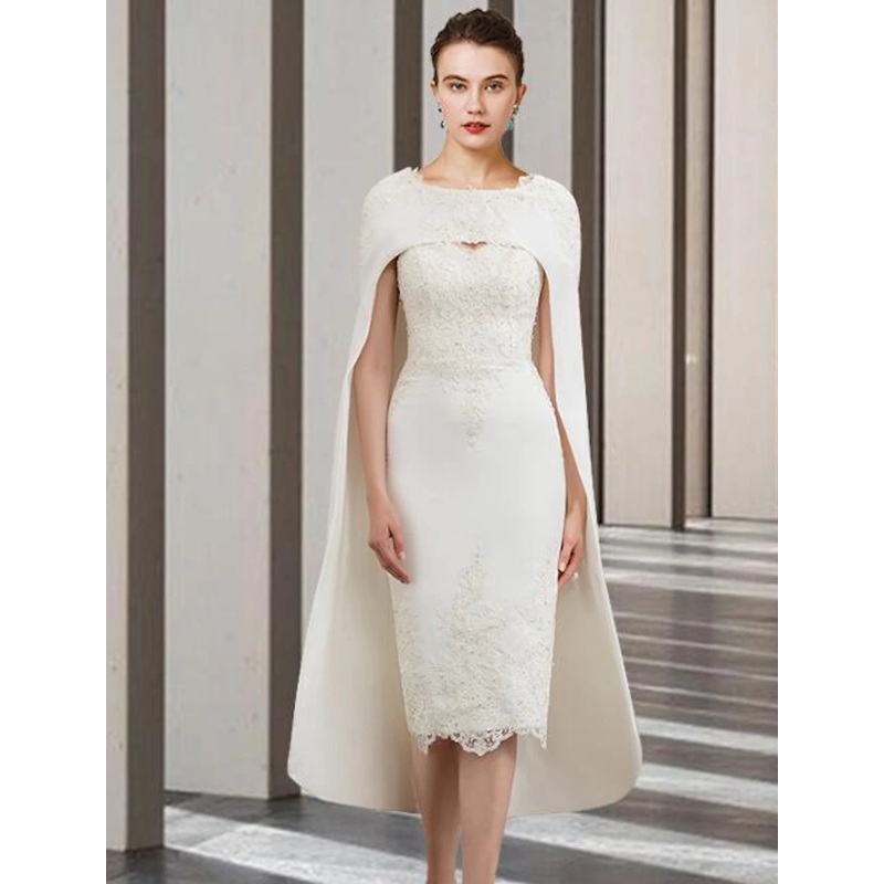 Two Piece Sheath / Column Mother of the Bride Dress Wedding Guest Church Elegant Jewel Neck Knee Length Chiffon Lace Sleeveless with Beading Appliques Fall