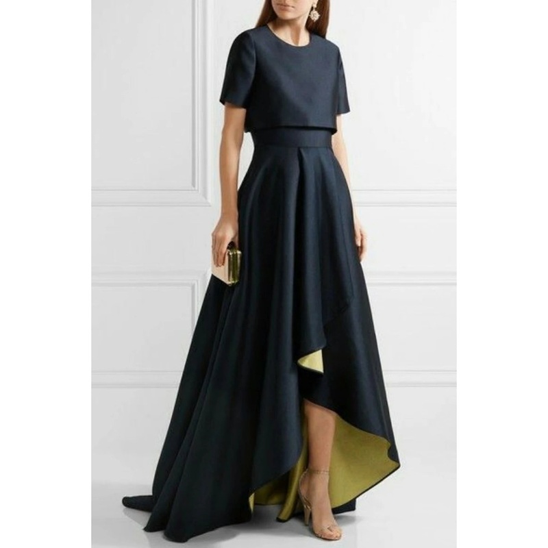 Two Piece Sheath / Column Mother of the Bride Dress Wedding Guest Church Elegant Simple High Low Jewel Neck Asymmetrical Taffeta Short Sleeve with Pleats Solid Color