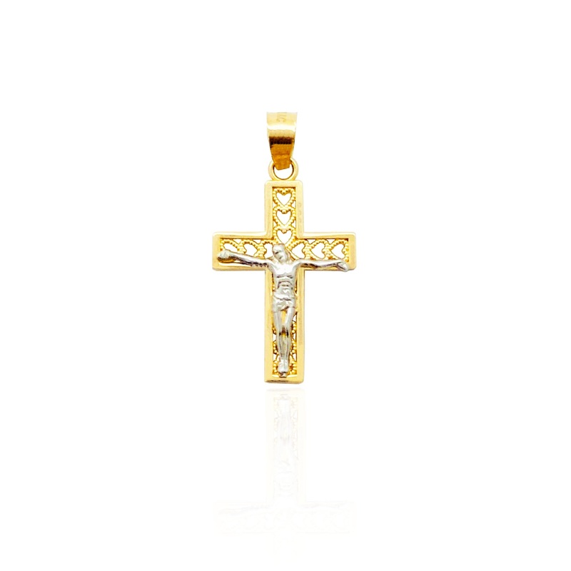 Two-Tone Heart Shaped Cross Pendant (14K)