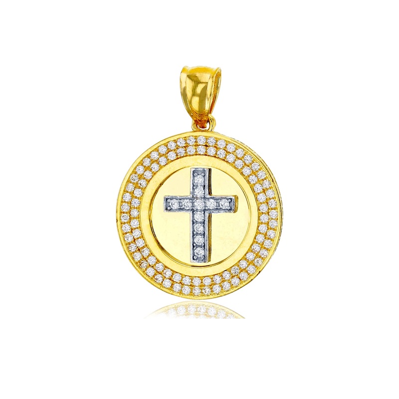 Two-tone Micropave CZ Cross Cicrle Pendant (14K)