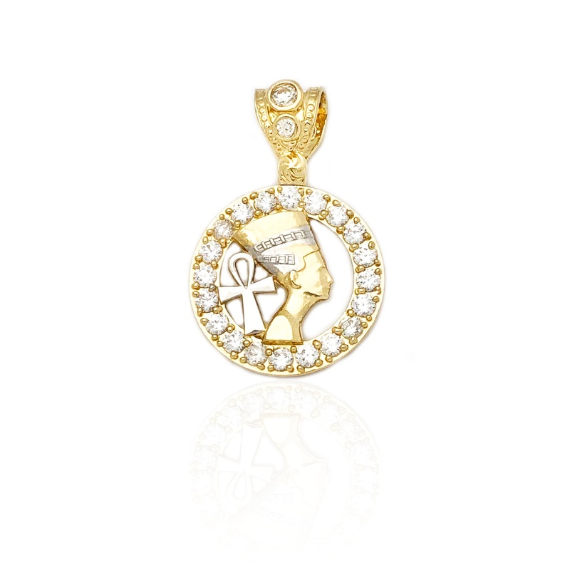 Two-Tone Nefertiti & Ankh Medallion CZ Pendant (14K)