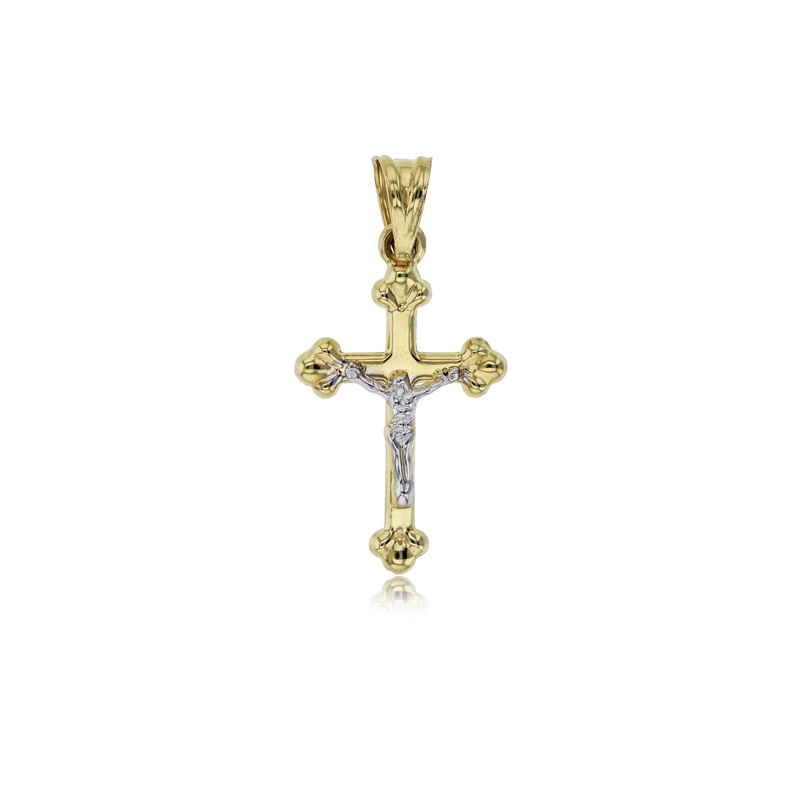 Two-tone Polished Clover Edges Crucifix Cross Pendant (14K)