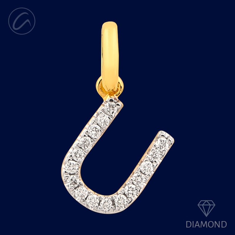 This pendant, elegantly crafted in 18k yellow gold, weighs 0.6 grams and beautifully features the letter 'U'. It's adorned with sparkling diamonds totaling 0.07ct. These diamonds are of G-H color and VS quality, adding a refined and luxurious sparkle. The