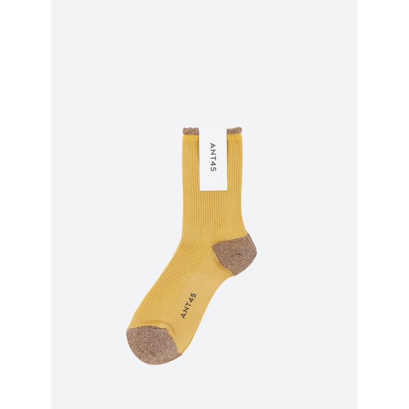Short socks in ribbed viscose with contrasting lurex heel, toe, and gathered cuff.