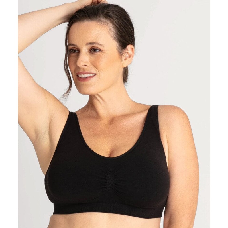 A bra that is so comfortable, you won't want to take it off!Features and BenefitsSuper soft & breathable Bamboo rich knitted fabricSeamfree design for the ultimate fit & comfortRemovable pad inserts for shapingBamboo rich fabric wicks moisture & heat away