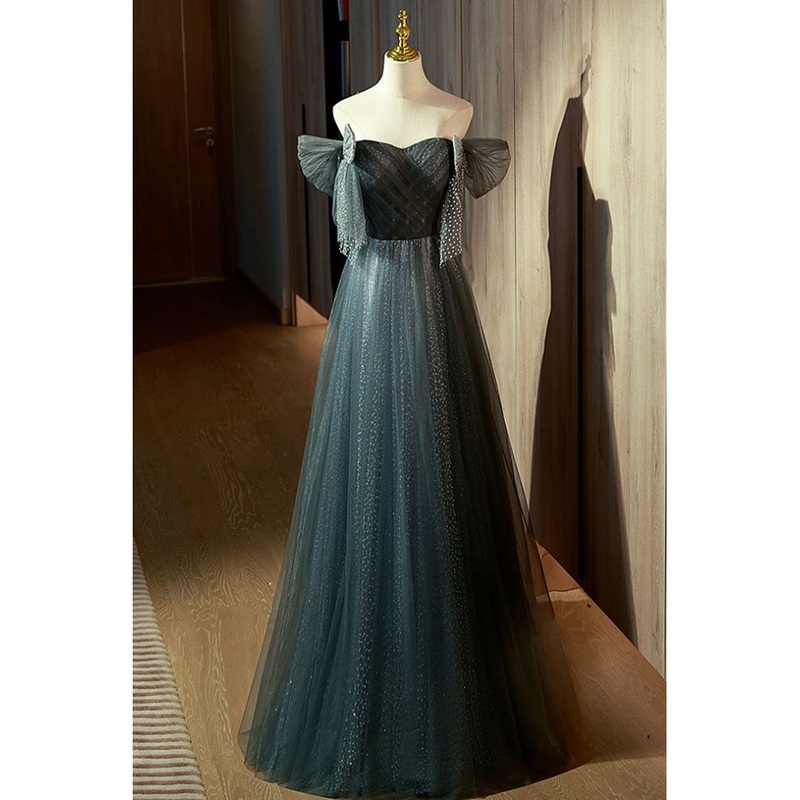 Be the first to review “Unique Ink Blue Spotted Off Shoulder Short Sleeve Sequin Ball Dress Ink Blue A-line Off Back Tie Bow and Floor Length Prom Dress” Cancel reply
