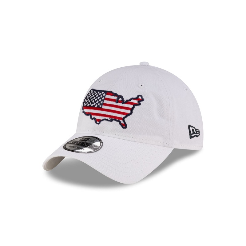 The USA Country White 9TWENTY Adjustable Cap features an embroidered United States graphic at the front panels with an adjustable D-Ring closure at the rear.