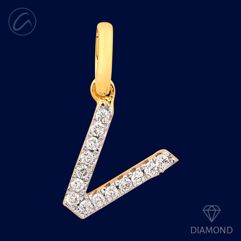 V Diamond Letter + 18k Gold Pendant