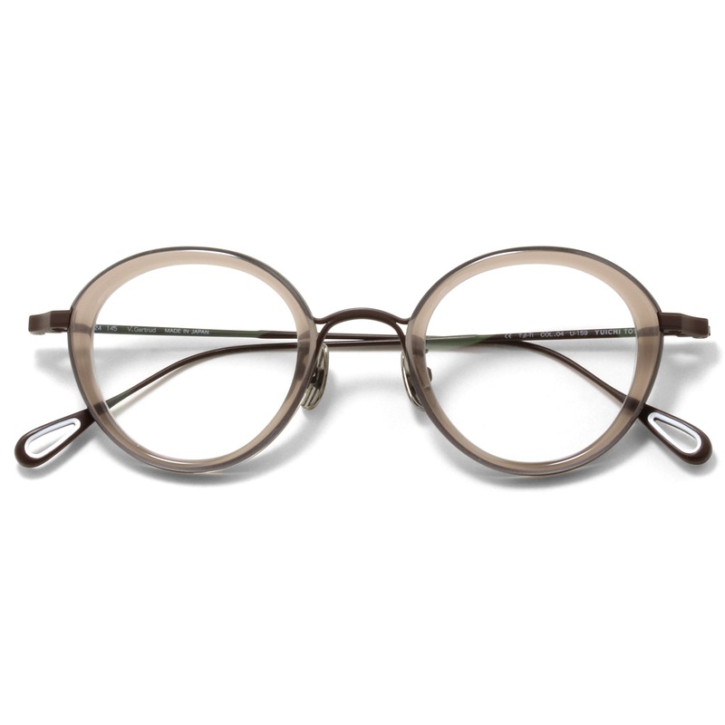 The Yuichi Toyama // V. Gertrud (U-159) frame features a classic round shape, expertly crafted from lightweight titanium. This design is enhanced by a Japanese acetate ring embedded in the frame front, providing a unique contrast that elevates its overall