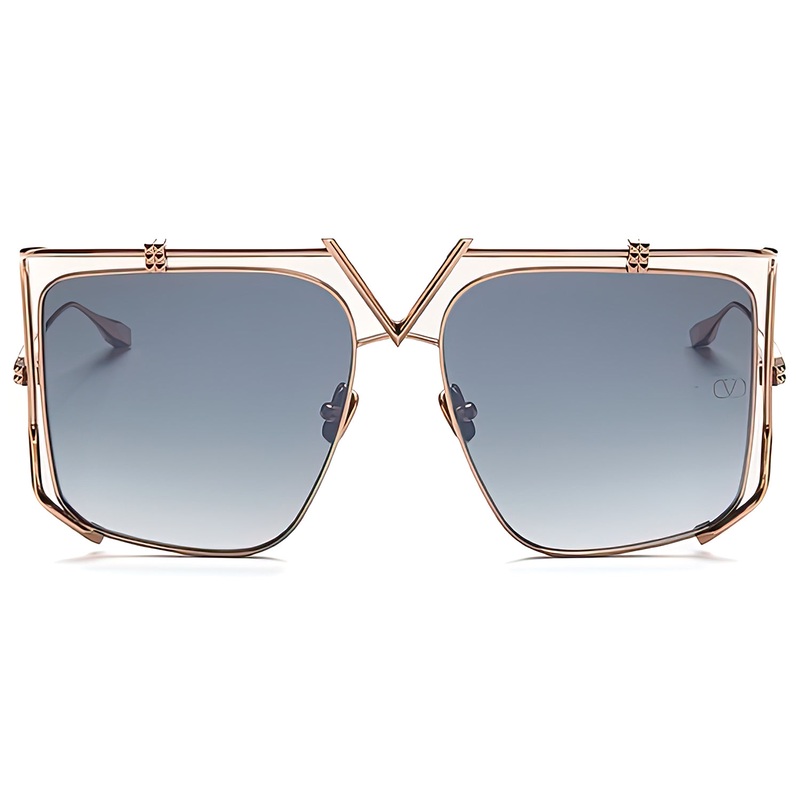 Modern in design but retro in styling, V-Light features an oversized 60s meets the future-inspired geometric design with modified square-shaped lenses that appear to magically float inside the frame. With a fashionforward presence that compliments a nearly limitless range of personal styles, V-Light is a genderless sunglass crafted from the finest lightweight Japanese titanium and features a smooth-finished tubular suspension frame with an eye-catching VLogo bridge thats as functional as it is decorative. Structural rings supporting the lenses from the top and sides compliment the design and are embellished with iconic Valentino studs. Additional 3D studs adorn the temples and elegantly sculpted temple tips. Made in Japan for incomparable craftsmanship and quality, V-Light is available with high contrast sun lenses in a seasonally inspired color palate including Rose Gold/Dark Grey to Clear Black Flash Mirror gradient AR lenses, Gold/Dark Brown Gold Flash Mirror AR lenses, and White Gold/Solid Pink AR lenses. Handmade in Japan. Includes Valentino box, hard case, soft case, cleaning cloth, and 1-year manufacturer warranty.