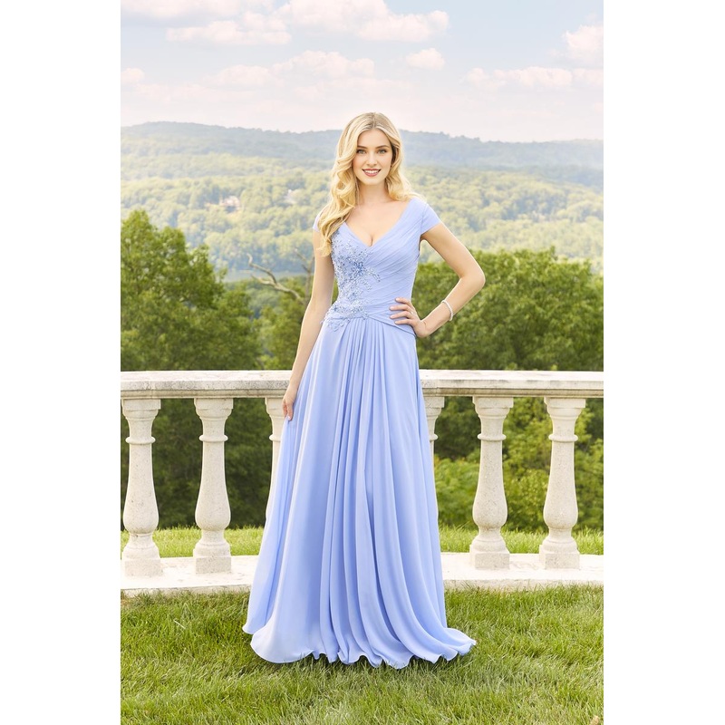 V-neck beaded chiffon and floor length mothers of the bride dresses