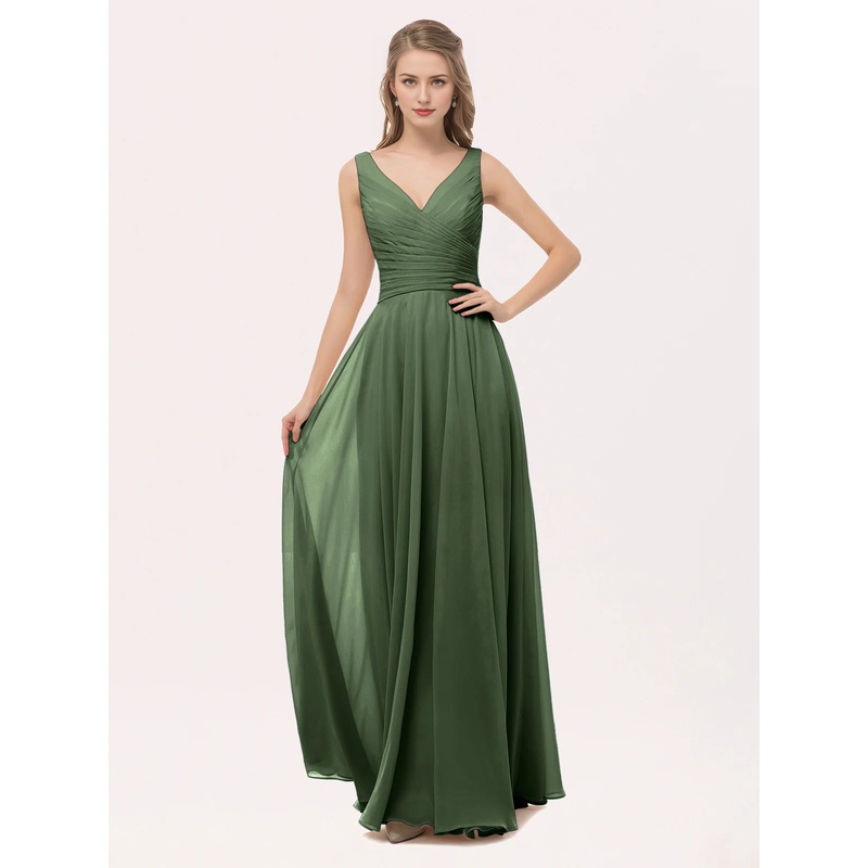 Be the first to review “V-neck bow chiffon long bridesmaid dress”
