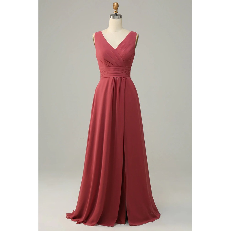 V-neck Desert Rose Sleeveless Chiffon Long Bridesmaid Dress