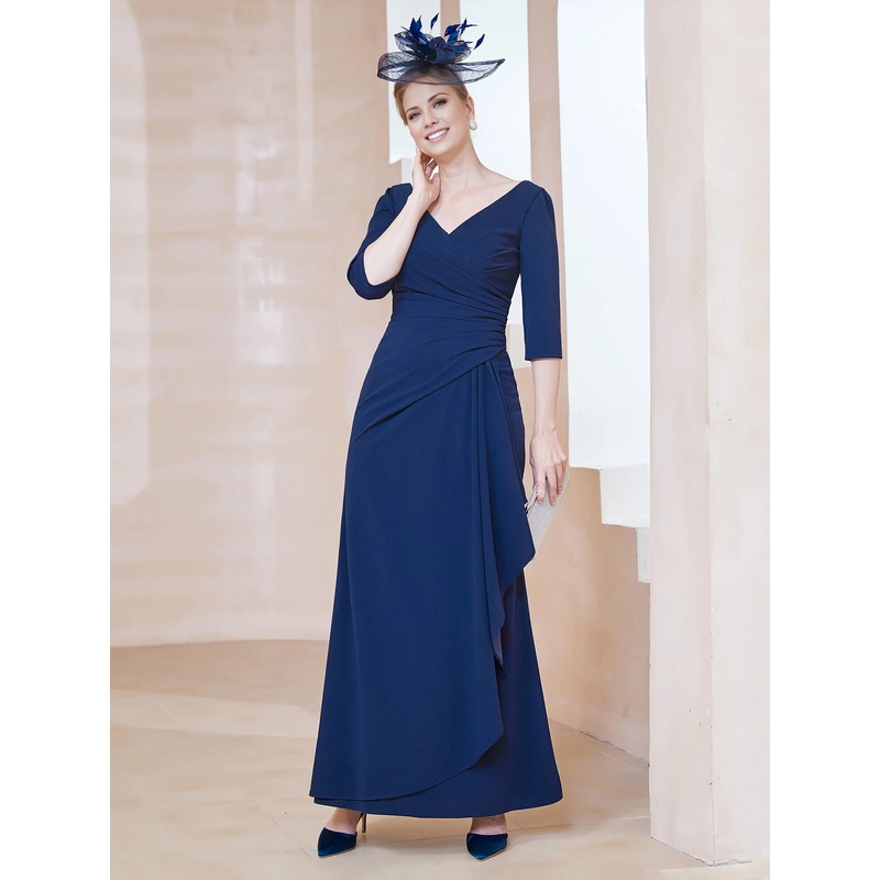 V-neck half sleeved pleated mother of the bride dress
