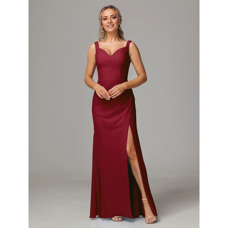 V-neck slit sleeveless off shoulder chiffon bridesmaid dress