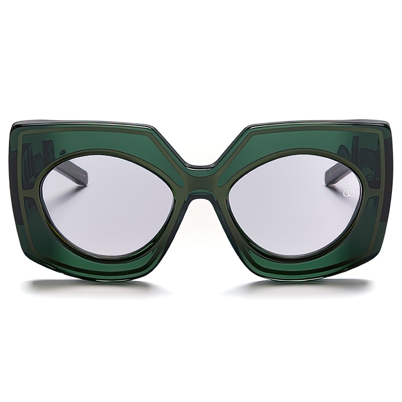 A pop-inspired celebration of the 1970s Valentino VLogo, V-Soul is emblematic of the Maisons mission to resignify its iconic design codes. Featuring an oversized square butterfly shape that is the very essence of playful romance, V-Soul is crafted of the finest thickset Japanese acetate with subtle layers of transparency that magically reveal through the front and temples a functional yet elegantly adorned titanium soul reminiscent of a butterfly emerging from its chrysalis. An oversized VLogo on the temples adds impact and reinforces brand presence, while the classic yet whimsical color palette is sure to make this butterfly a hit with Valentino women of all ages. Made in Japan for unparallel craftsmanship and quality, V-Soul is available with high contrast sun lenses in Black Swirl/Yellow Gold/Dark Grey to Clear gradient AR lenses, Powder Pink/Rose Gold/Dark Rose to Light Rose gradient AR lenses, and Crystal Green/Light Gold/ Medium Grey AR lenses. Handmade in Japan. Includes Valentino box, hard case, soft case, cleaning cloth, and 1-year manufacturer warranty.