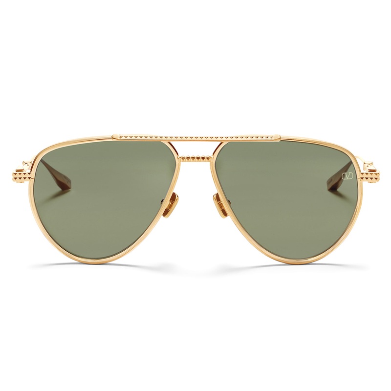 A perennial named for one of the most venerated and iconic design symbols in Roman architecture and the Valentino accessory universe, V-STUD II is an oversized aviator that perfectly reflects the Valentino less-is-more design philosophy. Rocking a subtle yet sophisticated twist on the classic aviator shape, V-STUD II is crafted of the finest Japanese titanium and embellished with signature 3D Valentino studs on the bridge, end-pieces, temples and temple tips. Subtle yet subversive, V-STUD II proudly lives at the intersection where punk and bourgeois styles collide. Made in Japan for unparallel craftsmanship and quality, the classic yet modern V-STUD II is available with high contrast AR sun lenses in V-Light Gold/Dark Green solid (compatible with optional Valentino Eyewear chain featuring VLogo buckle and Valentino studs), Black Rhodium/Dark Grey to Light Grey gradient, Bordeaux/Bordeaux solid, and as an optical frame in Matte Black Rhodium, Brown Copper, and Brushed White Gold. Handmade in Japan. Includes Valentino box, hard case, soft case, cleaning cloth, and 1-year manufacturer warranty.