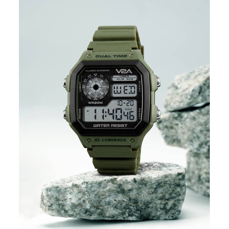 V2ADigital Watch – For Men Army Green Digital Small Dial Alarm Water-Resistant Sports Trendy Casual Sleek Stop Watch
