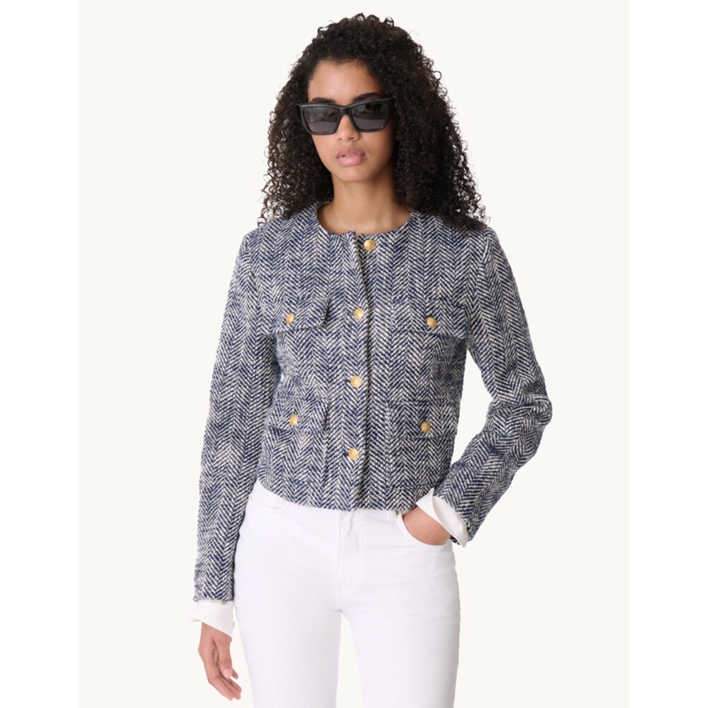 vanessa bruno clothing and accessories are free, modern, timeless and naturally beautiful, bringing together the comfort and romance that embody parisian allure.Herringbone jacket with metallic buttonsFront buttoned flap pocketsButtoned belt loopButton clo