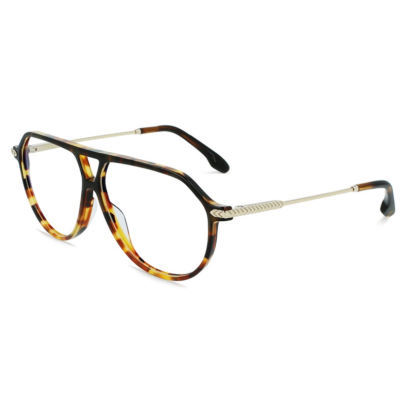 The Victoria Beckham // VB2624 offers a signature navigator shape that is designed into the chevron concept in this new optical style. The fierce acetate front is completed by thin metal temples, embellished by the characteristic iconic pattern. This style