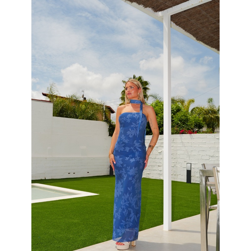 Vestido choker tulle estampado azul U (34-38)