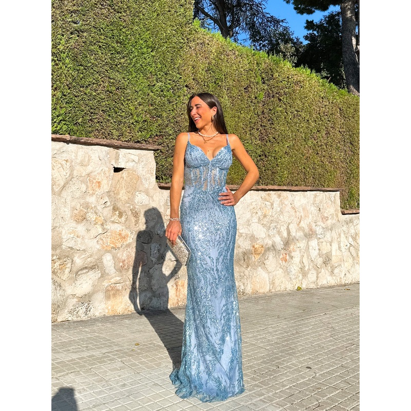 Be the first to review “Vestido cors pico pedrera celeste S (34/36)”
