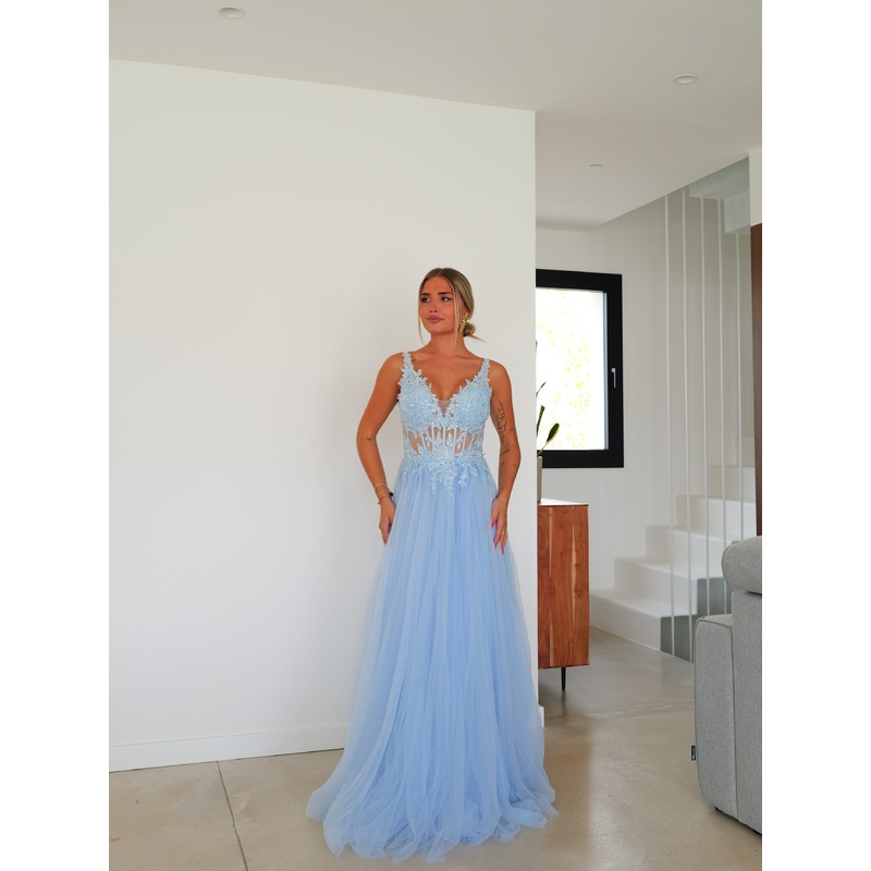 Vestido cors pico tulle celeste XS(32-34)