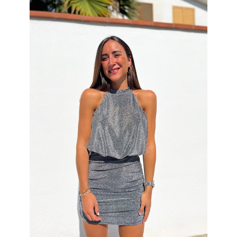 Vestido halter lurex plata U (34-42)