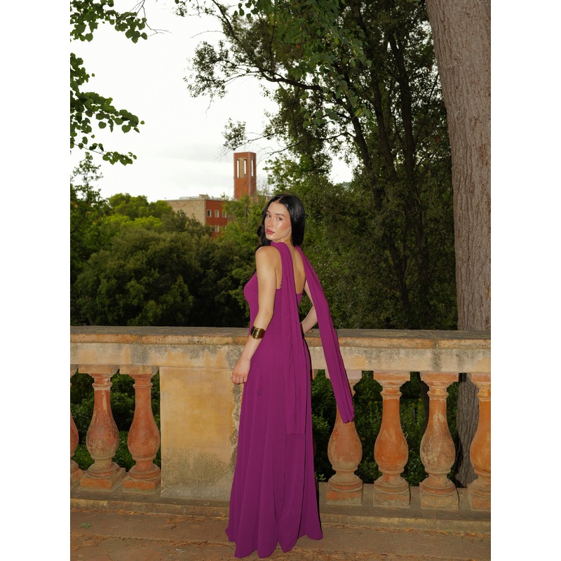 Vestido largo capa georgette berenjena U (32-38)
