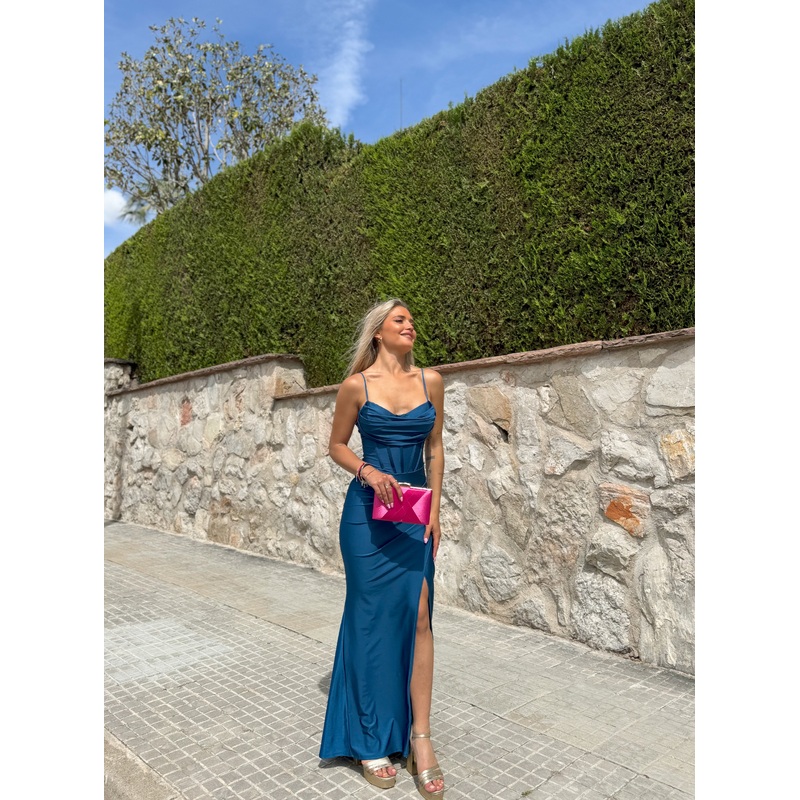 Be the first to review “Vestido largo corse satinado petrleo U (32-36)”