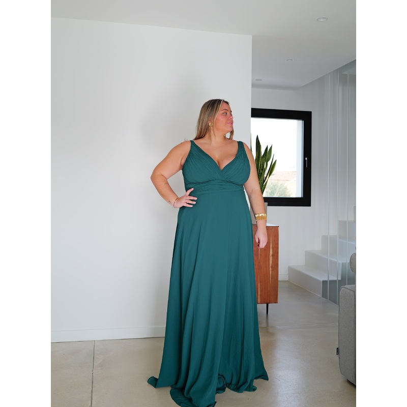 Vestido largo escote pico drapeado botella 36