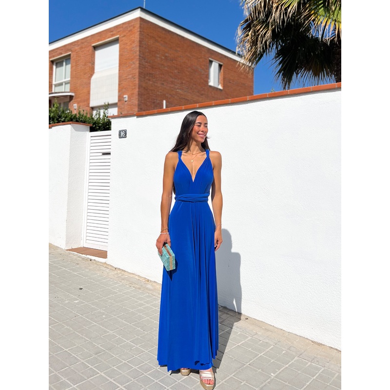 Vestido largo multiposicion. Falda ancha fluida, los tirantes se ajustan alrededor del contorno del cuerpo con la posibilidad de ponerlo en varias posiciones. Cintura elsticaVestido largo para graduaciones, bodas y eventosTalla nica (sirve de la 32 a la 40