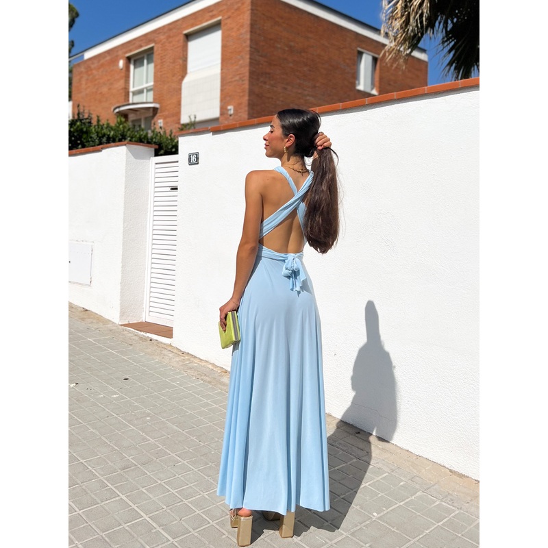 Vestido largo multiposicion. Falda ancha fluida, los tirantes se ajustan alrededor del contorno del cuerpo con la posibilidad de ponerlo en varias posiciones. Cintura elsticaVestido largo para graduaciones, bodas y eventosTalla nica (sirve de la 32 a la 40