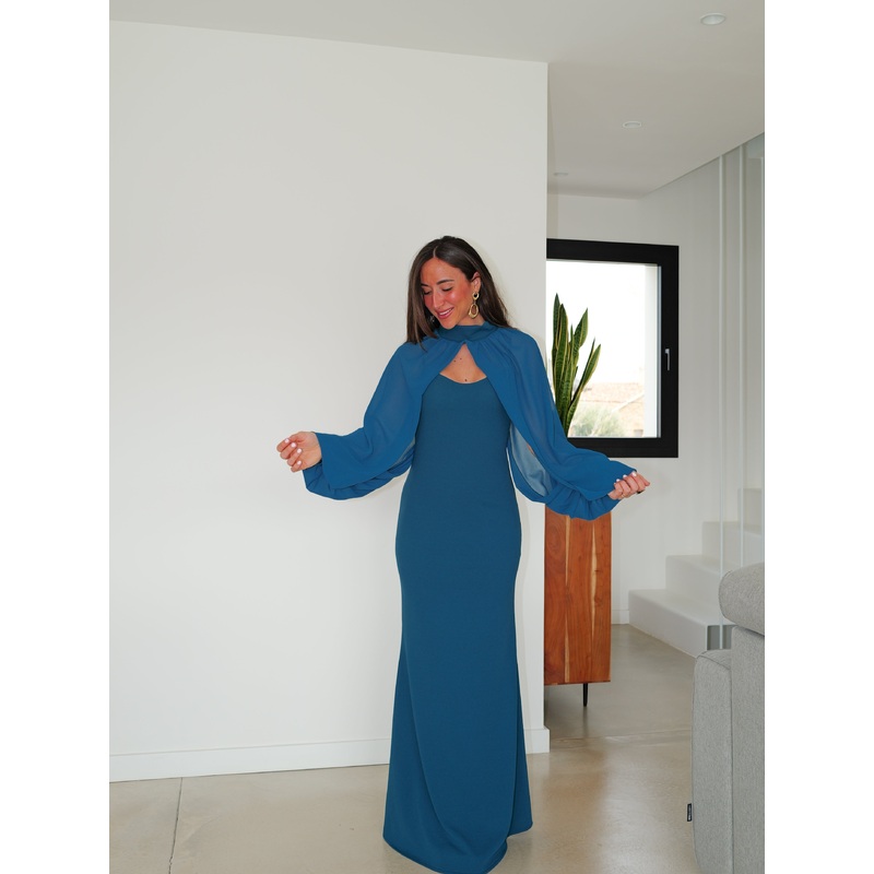 Vestido tirantes mangas gasa petroleo U (34-38)