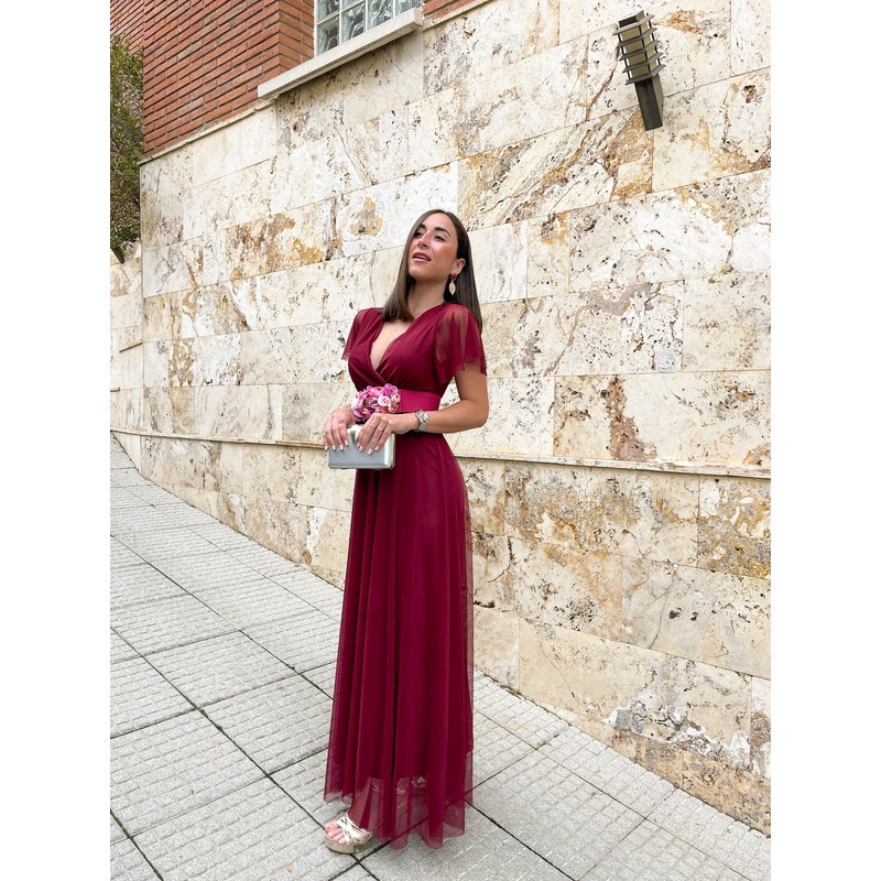 Vestido tulle manga vino U (32-42)