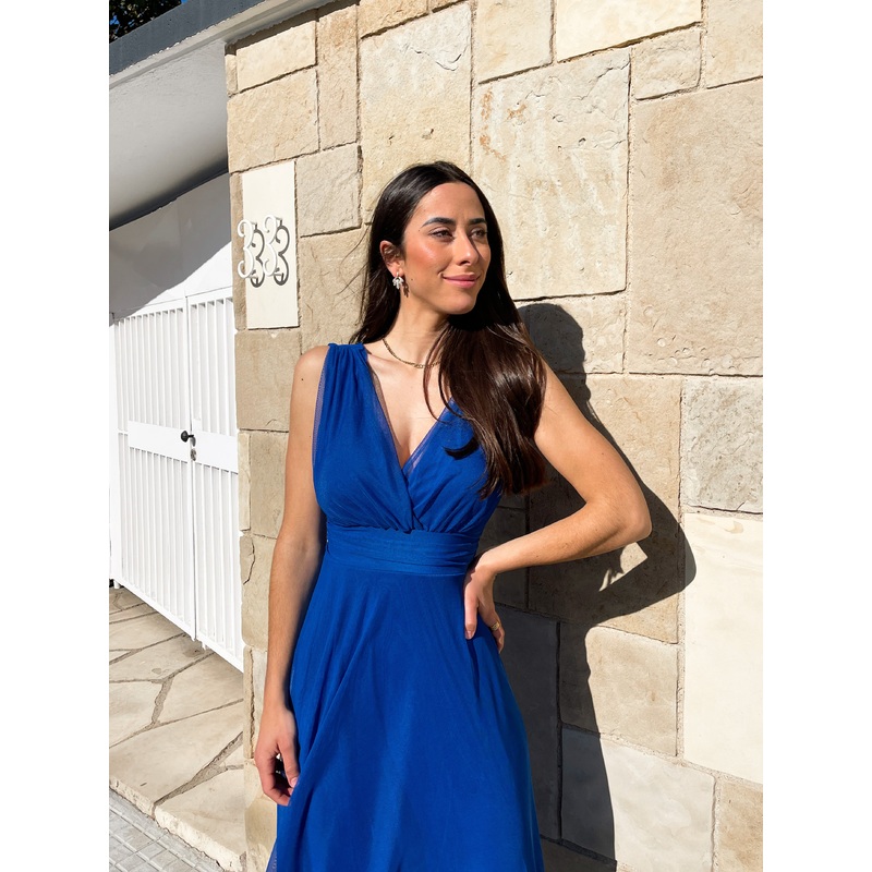 Vestido largo de tulle. Escote en forma de pico por delante y por detrs. Escote cruzado. Ajustado en la cintura con lazo. Llevo cocos en el pechoVestido largo para graduaciones, bodas y eventosTalla nica ( sirve de la 32 a la 42)Modelo: Altura 171 cm, Pech